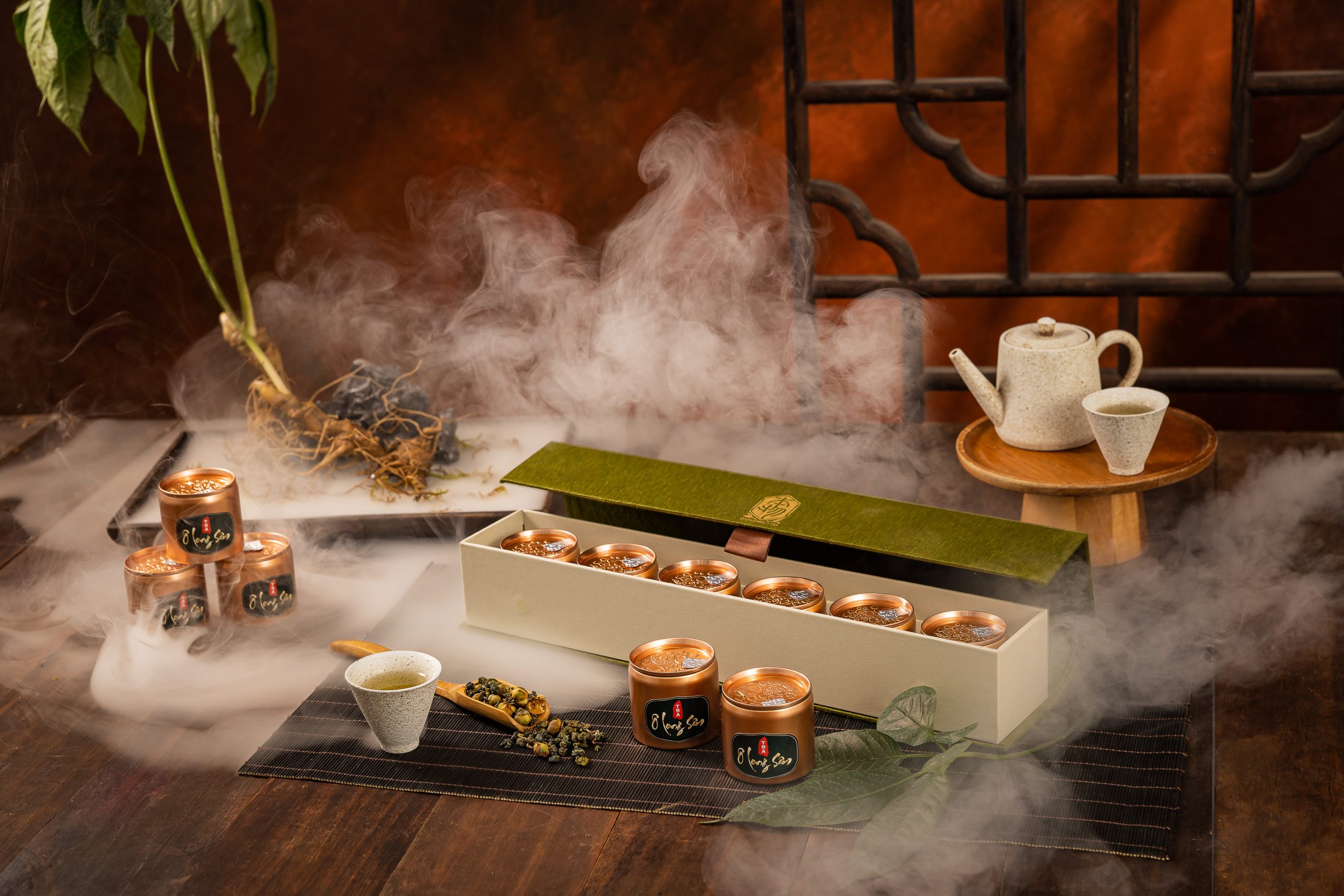Trà Thiên Sâm Quan Âm là sự kết hợp hoàn hảo giữa Lá Sâm Lai Châu trên 6 tuổi và hòa trà Shan tuyết cổ thụ trên 300 năm tuổi.